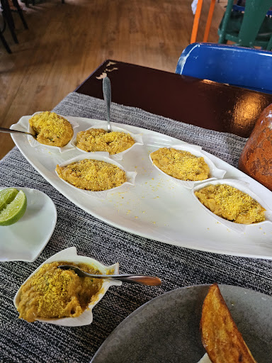 Read morelugar agradável, sem dúvida. pratos e sobremesa demorados. Moqueca para 3 pessoas: prato decorado com camarões inteiros grandes com casca e apenas sem a cabeça (o que é bastante desagradável, você querer comer algo que está dentro da casca e todos sabemos o quanto é desagradável retirar aquele plástico e aquelas pernas com garfo e faca ou , até, grotescamente com as mãos; é um tempo importante esse de brigar com o plástico do camarão, pois tudo já vai esfriando ) e tentáculos de polvo macios e deliciosos que cobrem uma sopa rala de chuchu, batata, beterraba e cenoura e peixe branco esfacelado que fica nadando na agua rala por excesso de cozimento com direito às espinhas e ossos da posta do peixe, incluindo aquela cartilagem grossa de algumas postas de peixe branco. Não leva dendê, da moqueca tradicional, nem leite de coco, da peixada pernambucana; uma sopa rala de legumes decorada com frutos do mar. O pirão é bom. Sobremesa: banana da terra verde cortada em pedacinhos duros e sem sabor definido, unidos por uma casca de algum queijo gratinado em cima dessa banana; deve ter algo doce como algum mel na finalização, que aglomera o queijo simples, aparentemente mozarela, esturricado, aos pedaços de banana dura. Acreditávamos que pedimos uma cartola, sobremesa pernambucana deliciosa, quando feita da forma simples, que caracteriza a sobremesa. E a desagradável cobrança de 10% pelo garçom, que deveria vir junto no valor total da conta...