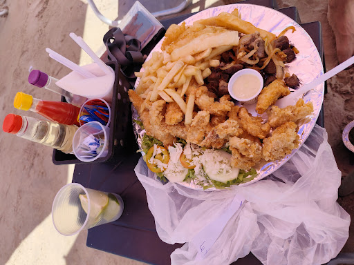 Boa barraquinha de praia. Guarda-sóis brancos, na areia, quase encostando na água, mais cadeiras de praia e mesinhas. Trazem à mesa uma pequena caixa de isopor com gelo e cervejas, refrigerantes, água. Você paga pelo que consumir. O cardápio possui opções de petiscos e pratos formais de peixes e camarões, além de vários coquetéis. Comemos "Camarão empanado" (com salada, macaxeira e batata frita) e "Pé na areia" (isca de peixe com camarão alho e óleo). Bebemos cerveja Heineken, Caipirinha de rum e limão, Coquetel no abacaxi, refrigerantes e águas. Serviço atencioso. Os garçons são educados e simpáticos e perguntam, com frequência, se está tudo bem. Preços altos, compatíveis com o cobrado nas barracas de praia de Porto de Galinhas. Se você consumir um valor razoável (exemplo, uma porção ou um prato), nada é cobrado pelo uso do local (o dia inteiro). Aceita dinheiro, pix e cartões de débito e de crédito. Local...