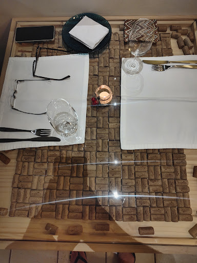 O serviço espetacular, o ambiente super agradável, musica baixa num volume que da para conversar, uma carta grande de vinhos, mesa com uma decoração de rolhas que é uma verdadeira graça,...
