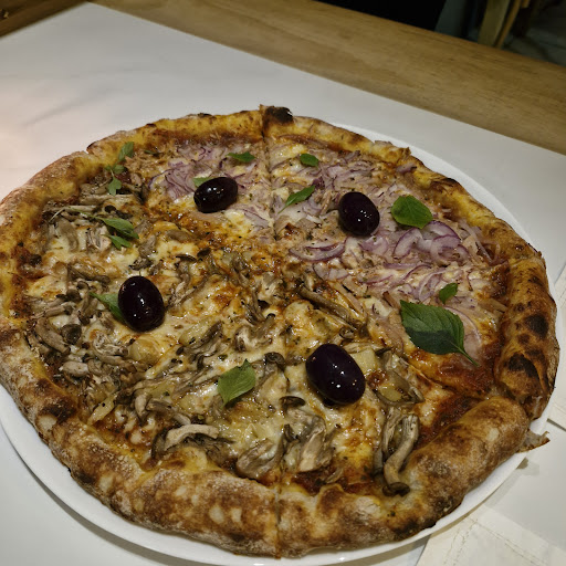 Read morePizzaria localizada no primeiro andar de um edifício, com entrada não acessível a pessoas com necessidades especiais em razão dos degraus existentes. É um pequeno espaço com 5 mesas de bonita decoração e conta com o prestativo atendimento do Clayton. Pedimos 1 pizza metade atum e metade cogumelo com alho. A massa é de boa qualidade, mas o molho tem muita noz moscada que rouba o sabor de tudo. A metade de atum tinha cebola demais que escondeu o atum e trouxe muita umidade pra pizza. A metade de shitake não tinha o alho como destaque. Nem dava pra sentir sua presença. A mim pareceu 1 cópia melhorada da Dominos. Embora o ambiente e o serviço sejam ótimos, a pizza...