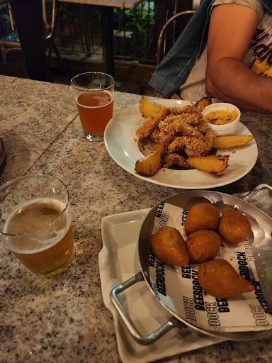 Read moreEstive ontem no novo endereço do Beerdock e sinceramente foi decepcionante. Por fora ele está com um visual bacana, mas por dentro a reforma parece inacabada a começar pelo chão. Não é questão de ser rústico, mas cimento total que deixa um aspecto de casa que não finalizou a construção. Mas isso é só um detalhe. Dividiram em dois espaços: o de shows e a parte maior fica do outro lado que é a das mesas e o som não chega lá por causa do acústico do outro espaço que separa. Acreditem se quiser, mas eu e minha amiga ficamos do início ao fim na parte das mesas e no final tivemos que pagar couvert pelas músicas que não ouvimos. Isto chega a ser até cômico... Pedi uma caipiroska de uva e quando a mesma chegou estranhei a aparência que estava mais parecendo um caldinho de feijão preto com pontinhos brancos. Ao experimentar, vem a surpresa: no canudo só subiam os caroços das uvas. Isso é uma tentativa de matar a pessoa por engasgo? Imediatamente chamei o garçom e falei a ele que estava impossível tomar a bebida porque só vinha caroço quando tentava tomar. Sejamos lógicos, se vão servir uma bebida deste nível, comprem uvas sem caroços! Isso é o básico. Pedi pra ele resolver e voltaram com a bebida coada. Ficou menos pior! Falei a minha amiga: "se a caipiroska veio cheia de caroço, vou pedir caldinho de peixe e eles vão mandar cheio de espinhas". Dito e feito! Acho que a única coisa que posso elogiar é o atendimento do garçom que nos atendeu e acredito que não é ele que está na cozinha, e o pastel de carne que continua bom. De resto... Não pretendo voltar neste endereço...