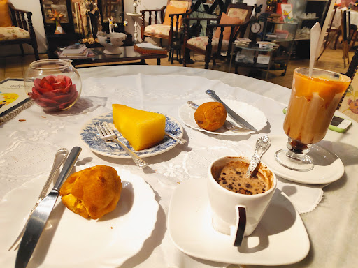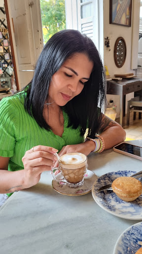 Um café que se transformou em experiência maravilhosa. Entrei sem expectativa nenhuma, logo no salão interno tinha mesas, cadeiras e duas cadeiras de balanço, já me aboletei em uma das cadeiras se balanço pensando, daqui a pouco vem algum bolo pra comer, qual não foi a minha surpresa quando comecei olhar ao meu redor e percebi que era uma galeria de arte tambem, para todo lado eu olhava tinha uma coisa peculiar. Me imdicaram que eu experimentasse o bolo de noiva, mais uma vez sem expectativas pedi, quando veio foi uma surpresa, um bolo diferente de tudo que eu já havia comido na vida, maravilhoso, experimentei tb café com limão, chá de frutas vermelhas com maçã, bolo de tapioca e bolo de pé de moleque, tudo maravilhoso! Os cafés e chás são gourmet, são tão gostosos que não precisam ser adoçados. O ambiente é um lugar surreal, ficaria ali várias horas conversando com minha família que estava comigo e com o dono sr. Botelho, uma pessoa encantadora que atende e acolhe cada cliente de uma forma muito especial, tranformando um café em uma experiência maravilhosa! E pra completar a experiência tem um gatinho que é...