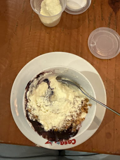 Crepe, muito bem recheado com frango desfiado bem temperado E creme de queijo e catupiry na medida certa. Sem ressalvas. O açaí é o melhor que já comi, realmente me lembrei de quando fui pela primeira vez na unidade de boa viagem. Não tem aquele gosto de gelo, realmente parece que o açaí é mais puro e gostoso.