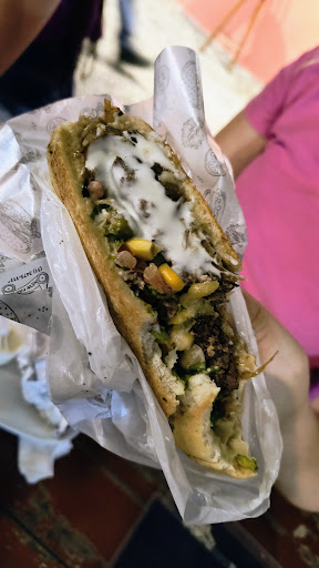 Um pão grande com muita coisa dentro que não se sente sabor de nada.