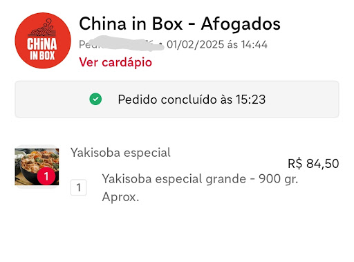 Read moreMuito cuidado com esse restaurante. Faço sempre pedidos no china in box via aplicativo CHINA IN BOX