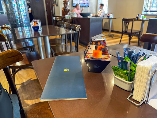 O ambiente é minúsculos, abafsto e extremamente barulhento. As atendentes nada atenciosas. Fomos bater papo fora do escritório, decidimos por conhecer o local. Como opção fomos unânimes, escolhemos salada de frutas e café gelado. Péssima escolha!!! A salada de frutas em nada assemelha-se a foto do cardápio ou o que conhecemos como tal!!, serviram numa taça pequena alguns pedaços abacaxi verde e manga idem, três pedaços de kiwi e cinco uvas verdes e ponto, nada mais. O que foi servido, nem de longe assemelha-se a salada de frutas. Salada de frutas precisa ter: maçã, banana, mamão, melão, melancia, no mínimo. Acompanhando trouxeram dois mini recipientes, com equivale a uma colher de café, de melaço e outra de granola mole (velha). O valor pago por está 《salada de frutas》foi de R$20,00 e O café sequer tinha sabor ou qualquer atrativo, sem gosto e sem graça. Não recomendamos nem...