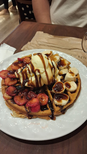 Read moreConfesso que estava com medo de conhecer por conta de algumas avaliações negativas, mas quis tirar meu veredito. O serviço é bom sim, o waffle é gostoso e o café também. Eles servem café especial, vi muita gente reclamando de chafé, mas percebi que as pessoas só não conhecem o café especial mesmo. Porém, é muito mais caro do que vale, o waffle com calda de chocolate é literalmente aquelas caldas de sorveteria, pelo valor (40 reais) eu esperava uma ganache. Não visitaria de novo pelo alto valor já que existem outras cafeterias que oferecem qualidade igual ou superior com valores mais justos. Tudo é voltado para a "cultura americana" ent os cafés vão ser mais leves e os bolos mais secos, recomendo ir nos waffles e chocolate quente ou...