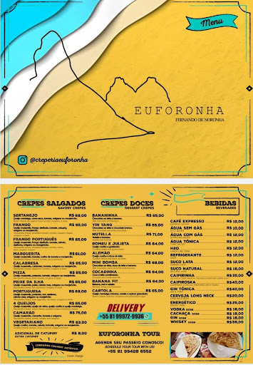 Read moreFomos jantar na expectativa de um ambiente mais tranquilo e agradável na vila dos remédios para variar um pouco ir em restaurante. O atendimento foi excelente, atendentes bem humorados, tiraram as duvidas e fizeram sugestões. Comemos o crepe de carne seca, que estava delicioso. A massa estava divina, um dos melhores crepes que comi. Não estávamos com tanta fome, então eu e meu marido dividimos um crepe porque é bem servido. De sobremesa, pedimos o crepe de chocolate ao leite e branco que estava uma delicia. Estava tendo música ao vivo com o cantor Davi que nos deixou 1 hora a mais no restaurante depois de já termos acertado a conta de tão agradável que estava. Preço de acordo com o que é Noronha. Vale...