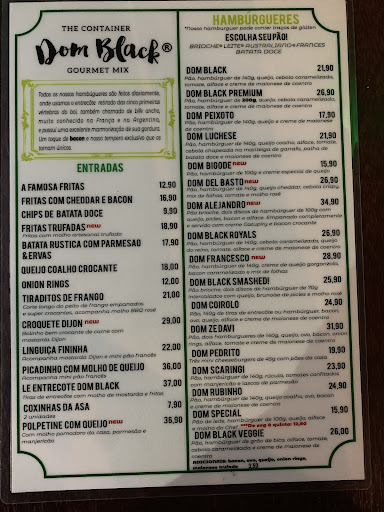 Read morePéssima experiência! Há tempos queríamos conhecer o Dom Black mas sempre dávamos prioridade para outros lugares e ontem resolvemos arriscar. Foi uma decepção total: Pedimos um Dom Black e um Dom Alejandro, juntando os dois dava um sanduíche minimamente decente. São muito pequenos, a carne estava sem sal, pouco molho, pouco queijo e bacon, pouco tudo... não compensa nunca o valor pago por eles, existem inúmeras opções BEM melhores em Recife e cidades vizinhas. Pedimos também o croquete que no cardápio dizia ser carne suína, mas depois fomos informado que era bovina, até aí tudo bem, acontece. Quando chegaram, apesar de serem grandes, eram completamente sem gosto, praticamente sem sal ou qualquer tipo de tempero, os molhos não vieram, precisamos lembrar aos atendentes. Estes por sinal altamente sobrecarregados, tirar uma dúvida com eles era um sufoco. Os pratos e talheres estavam gordurosos. O ambiente é legalzinho, mas juntando com o restante não vale à pena de forma alguma. Não gostei, não voltarei e...