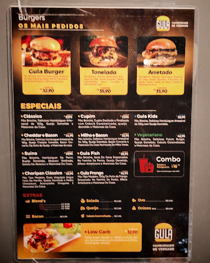 Read moreGostei do Gula Burguer, ambiente sem grandes destaques em sua decoração, mas gostoso, sanduíches com hambúrguer artesanal bem preparado e boas opções de drinks, mas o que mais quero destacar aqui é a atenção do Matias, rapaz que anota os pedidos e serve as mesas pois, um dia após comer no local, voltei lá pra pegar lanches pra viagem e enquanto eu aguardava o preparo, começou a chover forte, Na hora da saída o Matias estava com um guarda-chuva daqueles grandes e acompanhava as pessoas até o carro, qdo saí ele veio até mim e perguntou onde estava meu carro, porém, como eu estava hospedado a 2 quadras eu tinha ido a pé e qdo disse isso, ele me falou, então vou te acompanhar até o hotel. Eu disse a ele que não precisava, pois tinha que andar por 2 quadras, mas ele não hesitou e falou, sem problemas vou até lá, porque a chuva está forte . Parabéns Matias, por dar esse tratamento VIP aos clientes e parabéns a Gula por permitir essa atenção e ter um funcionário tão atencioso e...