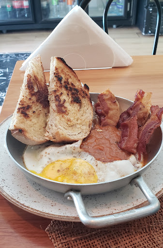 A única sugestão que eu levantaria com o estabelecimento seria melhorar a descrição dos itens no cardápio. Tive que fazer algumas perguntas para entender o que algumas opções eram. Quando pedi os ovos, o prato veio com bacon e eu não fazia ideia. Também não é uma questão de conhecer pratos tradicionais porque pesquisei alguns no Google e não era o caso de serem nomes estabelecidos que implicam em uma determinada combinação para quem está familiarizado.