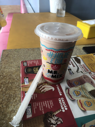 Chegamos no estabelecimento e efetuamos um pedido de dois milk-shakes, um no valor de R$8,50 e outro no valor de R$9,50, totalizando R$18,00. Ele perguntou se teria como efetuar o pagamento via pix, o que me foi permitido com a leitura de QR-CODE, disponibilizado pela maquineta.