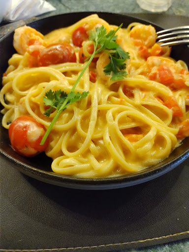 Os pratos principais tinham um sabor melhor, embora permanecesse o problema dos ingredientes não frescos e falta de tempero. Gosto e sensação de alimento requentados, o que para o preço cobrado e estrutura anunciada, deixaram completamente a desejar.