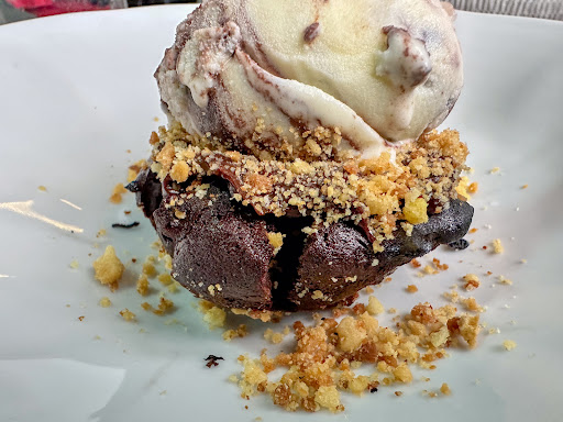 Read moreUm lugar gostosinho :) Logo na chegada a gente já vê um rede preguiçosa e um jardinzinho caprichoso. O cardápio oferece opções de carne, frango, peixe, camarão, vegano… mas achei que podia ser mais detalhada a composição dos pratos, por exemplo: “purê de raizes”, quais raizes? Além disso, percebi que existe uma preocupação quanto a manter os pratos acessíveis para diversos paladares, como os restaurantes de cozinha/comida inclusiva; os pratos principais são bem elaborados fugindo do tradicional, as sobremesas têm uma pegada mais natural puxada pro vegano/vegetariano e, justamente por isso, senti falta de aceitarem sem resistência a substituição de algum acompanhamento por outro que a cozinha já produza para outro prato ou de ser exposto que o prato X é regado na pimenta preta/do reino ou que no prato Y a saladinha é cremosa. Ex.: Tenho alergia a pimenta do reino, quando percebi que tava me sentindo mal e observei o sabor na comida, perguntei e o garçom confirmou que tinha no tempero, mas já era tarde, tava no final na refeição. Falando sobre a experiência em resumo: o sabor da comida é muito bom, carne é macia, aparenta ser feito tudo na hora, porém a proteína não veio quente; a quantidade serve duas pessoas suficientemente (agora se ambos comerem bem, talvez precise complementar com alguma coisa); os preços são compatíveis com os restaurantes que seguem essa linha (prato pra 2 entre $90 e $110, salvo engano); o serviço é bom, mas tem potencial pra ser mais atencioso; o ambiente é simples, porém aconchegante e bem cuidado; não vi estacionamento próprio, dá pra estacionar na rua (tem uma praça em frente); não peguei fila de espera, não sei se é a realidade do...