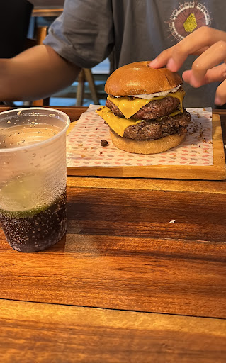 Read moreHambúrguer NA BRASA. Bem interessante e apresentação ótima com aquele leve gosto de churrasco. Não sei se a combinação que fiz foi das melhores (hambúrguer + cheddar + cebola caramelizada + maionese da casa), mas faltou algum sabor pra ele ficar top. Esse que fiz ficou MASSA, mas creio que a pessoa deva colocar um adicional (bacon) pra dar mais gosto e ficar TOP. A batata frita é uma das melhores que já comi (não é algo tão especial, mas eu sou viciado) e o refri tava beeeem gelado (ótimo).