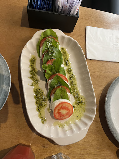 Read moreAmbiente agradável no térreo do Fity Hotel. Atendimento simpático e atencioso. Cardápio resumido, mas bem planejado. Pedimos de entrada uma salada caprese para compartilhar. De principal, o linguine al gamberi estava excelente. Bem servido de camarões grandes, com molho de pistache no linguine e creme de burrata com bom sabor. O polpettone estava bom, e veio acompanhado com bom molho de tomate e espaguete. De sobremesa, tiramisu bem servido, bom para compartilhar. Pontos a melhorar: A roupa saiu com cheiro forte de comida; a porção da salada caprese é pequena e vem com pouca folha; precisa incrementar o tempero do espaguete do polpettone ou incluir molho de tomate nele; incluir mais queijo mascarpone e mais sabor de café no tiramisu; o tiramisu vem com excesso de pó por cima; incluir limoncello...
