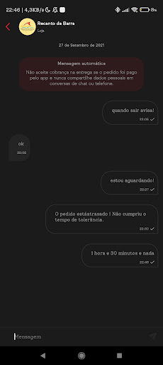 O atendimento presencial foi bom. Porém a comida não vale a pena. Ja tove uma experiência muito ruim pelo ifood onde enviaram a pizza com ingredientes errados, refrigerante errado, sendo que eu tinha dito que não gostava de refrigerante zero e que se fosse assim preferia cancelar o pedido. Dessa vez precisei ir presencialmente na loja para trocar o refrigerante e a pizza poois eles simplesmente nao resolveram via ifood.