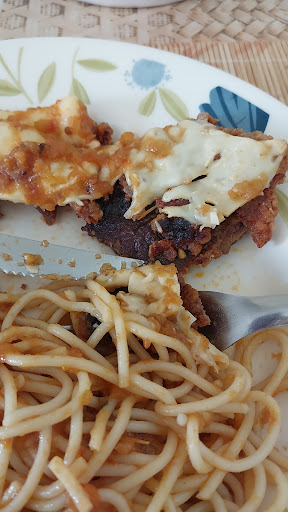 Na segunda experiência fui presencialmente com minha família e pedimos um filet a parmegiana. Pra começar nao é filet, é bife. Mas pelo preço eu já esperava isso, ate ai tudo bem. Porem a carne veio extremamente fina, queria eu ter levado uma balança, poiis quando questionei o garçom ele disse que cada bife (a porção vinha com 3) tem 150g. Bom se for 150 o bife com o empanado e o queijo, talvez chegasse proximo dos 150, ainda assim acho difícil. Bife duro e fino, a camada de empanado era mais grossa que o bife e pouquíssimo queijo. Pedi queijo ralado eles levam na mesa servem pra você pra que você nao coloque muito e não permitem que o queijo fique na mesa. Alegaram ser um queijo ralado sem ser industrializado e por isso dosavam mas claramente era queijo ralado de saquinho e como uma amante de massas e de queijo eu alego com propriedade que é um dos mais baratos ainda. O sabor estava ok, como de uma comida caseira e para o preço não esperava mais também.