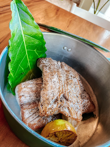 Um restaurante com comida deliciosa, em frente à praia Cacimba do Padre, mas que precisa urgentemente melhorar seu serviço! O Restaurante tem a proposta de ser o mais pé na areia possível (literalmente, já que o chão é de areia e nem banheiro eles tem, apenas um reservatório químico nos fundos) mas com uma decoração charmosa e estilosa, que combina com Noronha. Sobre o serviço, que é o que já se destaca de cara: demora absurda, em todas as mesas! Algumas pessoas estavam a quase duas horas esperando o seu pedido, e estamos falando de um restaurante que não é grande e teria como otimizar o serviço se quisessem… Uma das funcionárias que me atendeu disse que na cozinha eles estavam trabalhando em apenas dois funcionários, e que eles também servem os pedidos que são feitos na praia, por quem aluga os guarda-sóis. Ou seja, acabam não dando conta da demanda. E por que isso importa? Pq em Noronha, o turista precisa de um serviço que seja otimizado e prático. Perder mais de duas horas do dia para fazer uma refeição é não ter a oportunidade de usar essas horas desbravando as belezas da ilha. Diante disso, vá com muita paciência. Os preços são equivalentes ao cobrado na maioria dos restaurantes da ilha, com porções que servem duas pessoas de forma satisfatória ou uma pessoa com muita fome… De entrada, pedimos o sashimi com maçã verde, simplesmente delicioso! Em seguida, nossa refeição foi posta à mesa, servida em pequenas marmitas de lata, gostamos da proposta! O peixe do dia era o atum, servido com arroz de castanhas, farofa de quinoa e salada de folhas. Os acompanhamentos e o peixe mudam conforme o dia. Nós demos sorte: o atum estava impecável! Ponto perfeito, muito bem temperado! O arroz, um dos melhores que comemos na ilha, e ainda acompanhado da maravilhosa farofa! Foi, sem dúvidas, uma das melhores refeições que fizemos na ilha e com o privilégio de estar em frente à praia que mais gostamos de Noronha! Comida boa, funcionários atenciosos e simpáticos, preço dentro do padrão Noronha e um ambiente gostoso para se fazer uma parada pro almoço… Mas o serviço desorganizado e incapaz de dar conta da demanda é algo que nos faz repensar uma segunda visita. Mas temos que fé que a casa irá reavaliar isso em breve teremos um serviço bom...