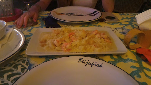 This restaurant opened in 1991, and there’s a reason it’s still open and going strong—it’s really, really good! First, the restaurant’s entrance is so inviting. The front is covered with various types of palm trees and tropical plants that make you feel like you are entering into a secret grove in the jungle. There are charming and quirky handmade decorations all over and all the tables are covered with tablecloths with a beach theme, further contributing to the relaxed yet classy feeling. The waiters are very friendly without being too familiar. The menu can be described as Brazilian fusion cuisine, with French and African influences. “Beijupirá” is a type of fish—in English, it is known as a cobia or black bonito. Not surprisingly, the restaurant does a lot of seafood, and does it well (you can get other things too if you’re not into seafood). I’ve wanted to eat here for some time. They have a special plate that changes every year. This year, their special was called “BeijuHibisco”, which was shrimp in a hibiscus sauce served with pineapple rice. The shrimp were cooked to perfection and I’ve never had a sauce quite like this one—it was very delicious. The rice was also cooked perfectly. We washed it down with a few beers and the check (with the tip) came to about $65! Our waiter explained everything about the dish and we didn’t have to wait long either. I will definitely be coming back here again and I highly recommend that if you’re anywhere near here that you should eat here. You will not be...
