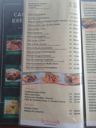 Read moreSou Cliente da Siciliana desde a infância, tenho 40 anos de idade. Antigamente frequentava a casa, hoje peço mais pelo Delivery ligando direto para eles. O Estilo das massas, pizzas são os mesmo de anos e anos, por isso eu a acho tão tradicional, quando vou lá, é uma volta ao passado nos tempos que minha família voltava dos acampamento e a gente parava lá para jantar. Hoje tenho uma crítica, não estou achando o valores justos, a pizza acho extramente cara, mesmo achando o queijo mussarela da casa o melhor de todos, percebi uma redução no tamanho da pizza também. Durante a semana tem duas pizzas em promoção, Calabresa e Mussarela, deliciosas, porém, eles deveriam variar os sabores ou por dia da semana ou baixando também também algumas pizzas, como a da portuguesa que acho deliciosa ou a pizza da casa, a siciliana. Não precisava ser igual ao preço da Calabresa e Mussarela, mas, colocar um valor promocional também para essas...