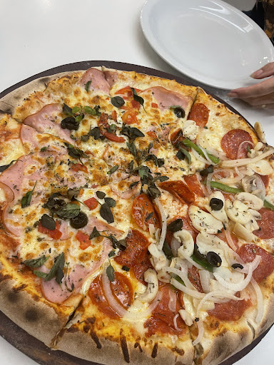 Read moreEu costumo pedir com frequência a pizza desse estabelecimento via delivery, e sempre achei que tinha um bom custo beneficio. Porém, quando resolvi comer no local me arrependi... os atendentes ficam o tempo inteiro gritando com os funcionários pois a cozinha é aberta e o foco do local é o delivery. A gritaria era tanta que o gerente preferiu ficar chamando um cliente distraído aos gritos pra pegar a pizza do que dar 10 passos até o rapaz e entregar o pedido. No final, quando esse cliente distraído não respondeu, a funcionária deixou a pizza no balcão e ficou por isso mesmo. Enfim, atendimento péssimo, ambiente ruim e barulhento, contrastando com a pizza que era...