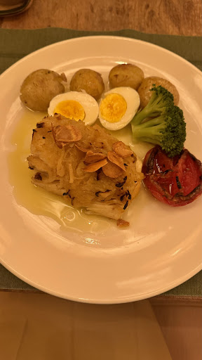 Read moreA comida estava muito gostosa (bacalhau da páscoa e bolinho de bacalhau). Mas o serviço foi muito ruim. Garçons corriam de um lado a outro do salão completamente esbaforidos, atendendo muito mais mesas e pessoas do que são humanamente capazes. Sentamos por coisa de 10 minutos e ninguém veio nos atender, a ponto da dona do restaurante, uma senhora muito simpática, muito gentilmente vir nos atender e anotar nossos pedidos. Em mais de uma hora de estadia, um garçom não veio na nossa mesa uma vez sequer para conferir e perguntar se queríamos alguma coisa. Pelo preço cobrado no cardápio, o atendimento deixa muito muito a desejar. Uma pena. Não deu vontade de...