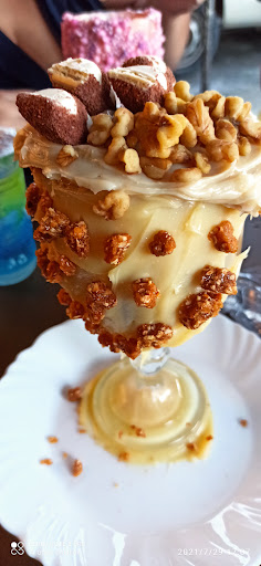 O café espresso é ok, já tomei melhores, mas, não é ruim, só é ok. O sorvete que escolhi e segue a foto é o Realeza. Sobre ele posso dizer que é muito bem servido na quantidade, duas pessoas são servidas por ele segundo meu entendimento. O sabor realmente me agradou bastante, não é extremamente doce e as nozes e o brigadeiro de noz é muito saboroso. Não sou fã de nada muito doce preferindo chocolate acima de 80%, ele não chega a ser amargo, mas não é enjoativo. Está de parabéns.