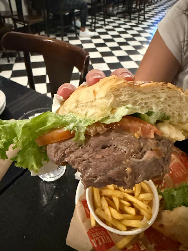 Pedi o sanduíche da casa que diz ter filé mignon e queijo gruyere. A carne não faço ideia do que é, mas nem se quer contra é, estava dura, parecendo uma sola de sapatos cheia de nervo e o queijo era provolone.