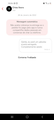 Fiz um pedido ontem pelo ifood. O yaksoba estava azedo, completamente estragado. Chamei o restaurante no chat do ifood, não responderam. Absurdo! Minha esposa ainda comeu umas duas garfadas, acordou hoje passando mal de cólica abdominal e Diarreia. Absurdo enviarem uma comida estragada, estou extremamente decepcionada e chateada com essa falta de comprometimento...