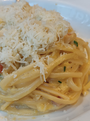 Read moreThis place is a perfect example that you can't be a high end restaurant just because it has a stunning interior. Long story short, you get disappointed because you expect a lot more quality. It's a nice place, but they totally mess up the Italian part. The carbonara isn't a carbonara, it's just a pasta with white sauce and bacon. They used bucatini not spaghetti. They used Grandma Padano cheese, which is better than Parmegiano. But where is the Pecorino? The bacon was just some (cold) smoked pieces of meat thrown in to the pan with the pasta. The bacon has to be cooked so the fat can mix with the dish!!! The sauce was definitely not a creamy mix of pecorino, pasta water and egg yolk. At least there should be one more egg yolk in there. Then the carbonara was topped with parsley, that's not right either. Where was the the black pepper? The bread table was good. But c'mon, you don't take charged for bread! That should come for free in a high end place. I mean, the place looks stunning. But it's clear that the there's no passion in the cooking. And that part is the most important thing. We ended up spending 180 R for 2 meal, 2 beers. That's way...