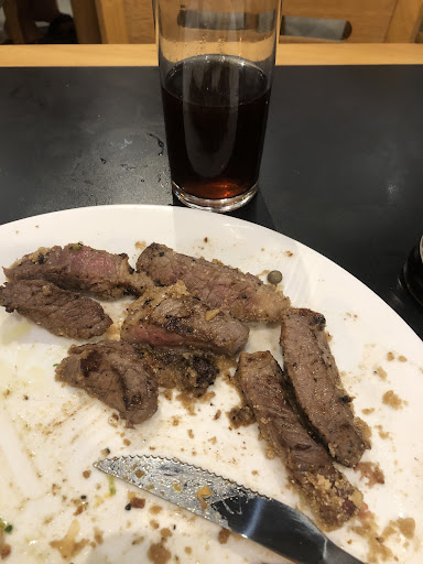 Read moreUm restaurante amplo e confortável com os preços um pouco mais altos do que inúmeros no entorno. Mas quando vamos nos balcões de pratos, verificamos que a diversidade é imensa, com comidas nacionais e estrangeiras, agradando ao freguês. A sobremesa de banana caramelada, o mate e o refresco de guaraná são de graça (só um copo de 300 ml). Quem vai pela primeira vez, tem desconto de 10%. No self-service tem uma ilha de churrasco, uma de comida oriental e perto da saída um balcão com café e doces (pago à parte). Mas bem na saida, à direita, tem uma mesinha com chá e café. No balcão de pagamento tem macarrons para vender. Os funcionários são atenciosos e gentis e seguem o protocolo contra a Covid. O acesso para pessoas com mobilidade reduzida é respeitado, inclusive no banheiro. As mesas são redondas e quadradas. A decoração é interessante e chama a atenção. Se quer comer bem, vá lá. Depois das 14 horas o preço da refeição diminui. E às sextas dão desconto na...
