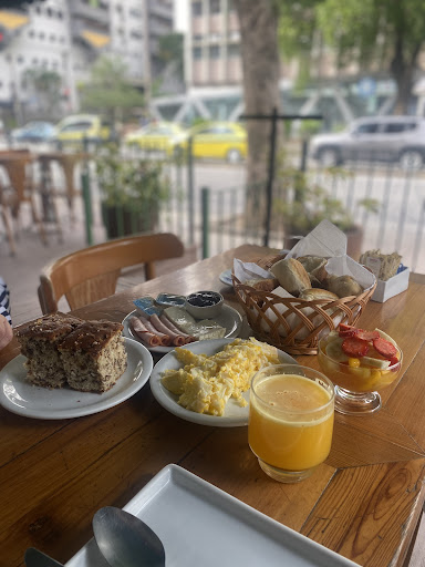 Reserva - não fizemos e nem precisou, 10h de um domingo e tinha bastante lugar. Localização - na Tijuca, pertinho da saída do metrô da Uruguai. Atendimento - bom, mesmo a gnt ficando na varanda. Ambiente - vibe mais antiga, decoração simples. Cardápio - bastante opção! Olhar com calma e sem mt fome ajuda hahaha. Comida - pedimos o café para 2 pessoas q vem: café com leite, suco de laranja, cesta com mini pães quentinhos, ovos mexidos, frios, bolo, geleia, manteiga e salada de frutas. Tudo tava bem gostoso e super bem servido. Valor - ok pra qualidade dos produtos. Banheiros - tá precisando dar um repaginada ali, mas tava limpinho. % - 10