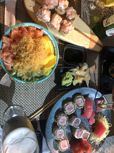 Read moreOs atendentes eram muito educados e legais, o ambiente era bem aconchegante. Acredito que o maior problema seja o sistema de rodízio deles, já que não é do modo tradicional, no qual anotamos as peças que queremos, e sim uma espécie de rodízio volante. Nesse tipo de rodízio, a quantidade de peças produzidas deveria ser maior e passadas com maior frequência, mas não é o que acontece. Além de que nem todas as peças chegam em todas as mesas, pois temos que dar sorte de uma mesa anterior não pegar todas. Sem contar que muitas das peças ofertadas continham muito arroz. Outra coisa também que nos incomodou é que às vezes nós eram ofertados alguns pratos inclusos no rodízio, mas que deveriam ser pedidos a parte, como entradinhas e uma tabuazinha de sashimi, só que demoravam tanto que o que deveria ser entrada, virou prato principal praticamente. Entretanto, apesar da insatisfação com o sistema de rodizio, as peças que conseguimos comer eram bem gostosas. Acredito que se pensarem em mudar para cartela do, ou em uma outra forma mais eficiente de servir, com certeza voltaria mais vezes e indicaria para muitas outras pessoas. Mas para quem quiser arriscar, está tendo uma promoção na qual paga R$ 90,00 pelo rodízio, mas apenas em dinheiro e em ESPÉCIE. Por esse valor promocional, até "vale a pena", porém se for no valor completo, prefira ir a outro. Obs: não dá para comparar um rodízio de pizza com um rodízio japonês, já que apesar de ser volante, no pizza geralmente são passadas com mais frequência, em maior quantidade e as "peças"...