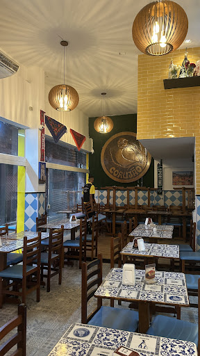 (Original) (Translated by Google) An excellent Portuguese restaurant located on the second floor of the Rio de Janeiro Municipal Market (CADEG), located in the Benfica neighborhood, in the north of Rio. The entire space is decorated with a Portuguese theme. The hostess, waiters, and owner are very friendly and welcomed us warmly. We ordered codfish balls as a starter with a sensational sauce made with olive oil and garlic. Delicious. Afterward, we ordered the main course recommended by the hostess: Bacalhau a Lagareiro (Lagareiro-style cod), a half portion, but perfect for two people. Excellent. Divine. And to finish, for dessert, a pudding and a quindim (a sweet pudding). These are the best desserts we've had in a Portuguese restaurant. We left very satisfied. ❤️👏👏👏 I RECOMMEND