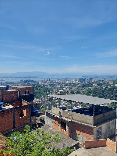 Though difficult to get to (as it’s right at the top of a comunidade), it’s well worth the hike. To get there, get an Uber to the "quadra do esporte", you’ll see a white wall. From there, you’ll need to go up a forested uphill path (which is met with stunning views of Christo and Pão De Açucar) at the top of the path on the right you’ll see a sign which says “Bar Do Tino” (about a 7 minute walk). You’ll have to squeeze through a tiny concrete walkway and you’ll arrive when you see the tile stairs.