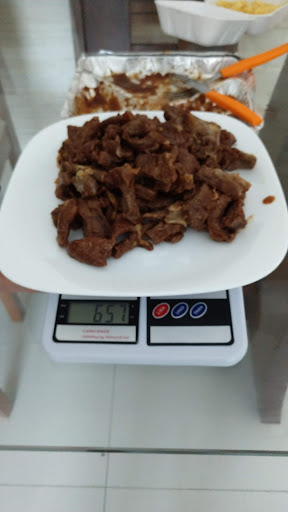 Pedi comida 3 vezes e a quantidade de carne veio sempre a menos ! Novamente hoje ! Pedra de filé mignon inteira com 900g de carne... VIERAM 657g !!! Além de uma quantidade absurda de arroz !