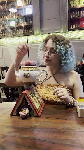 Quanto a opções, o drink da Alice e da Wandinha são parecidos, só muda a estética. E houve uma demora em servir e os garçons informaram que só tinham 2 pessoas na cozinha.