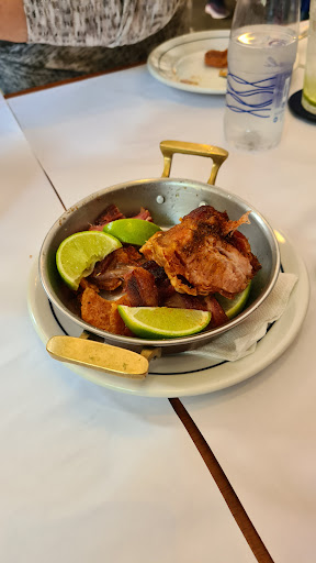 Fomos atraídos pelos comentários positivos porém, é preciso pontuar algumas coisas. Fomos em um domingo e o restaurante estava cheio. Enquanto esperávamos do lado de fora pedimos um croquete de Pernil, são 4 unidades por R$36,00. O croquete estava muito bom, recomendo. Não demorou muito, conseguimos uma mesa. Ao se deparar com o cardápio, percebemos que de "boteco" não tem nada, rs. Os preços eram de "gourmet" . Até aí tudo bem, o menu de almoço só tinha opções "para compartilhar" e não havia opção de almoço individual/executivo. Os preços são bem salgados. A maioria dos pratos custa em torno de R$200,00. Pedimos um Pernil Completo e aparentemente ele veio incompleto, acho que não tinha nem 400g de pernil. O restante do prato é até bem servido pra 2 pessoas, o arroz estava ok, a farofa e a batata estavam boas e o ponto alto foi o feijão que estava MUITO BOM. No final, na hora de pagar a conta percebemos que o restaurante cobra 12 ou 13% de serviço e decidimos pagar pelos 10% que são cobrados normalmente pela maioria dos bares/restaurantes. Quando pagamos a conta a garçonete nos orientou que deveríamos avisá-la que não pagamos o valor total cobrado pelo serviço porque daria "problema" pra ela. Eu não entendi pois sempre fiz dessa forma e nunca nenhuma pessoa reclamou, mas enfim, pela experiência e pelo preço...