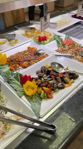 Read moreNão era para ter almoçado ali, tinha várias opções mas o destino quis me dar uma rasteira. O ambiente até que é bom, bastante lugar e tem um segundo andar. Porém a comida... Era uma segunda feira, então as chances de ser requentada era grande pq o gosto era de comida passada, no estágio de estragada e fresca, era o meio termo. O bolinho de frango meio azedo, o peixe tbm e a salada árabe mais do que amarga, provavelmente feita na sexta e guardada num pote fermentando até a segunda. Terminei de comer, ou melhor, de deixar meio prato, pq avaliei o que me daria um revertério de tarde. Na balança alegaram que meu prato tinha muita predominância de proteína e tive que pagar um valor a mais! Que lugar faz isso e não avisa? Algum advogado precisa almoçar nesse lugar. Na última garfada a atendente retirou meu prato e agradeci com a boca cheia de comida ainda e fui pagar com uma tristeza no coração, quase tomei um chocolate de cortesia na saída para alegrar porem foi outra decepção, era uma mistura de um achocolatado de fundo de prateleira, água com cloro da águas do Rio e uma xícara de trigo dos tigres tristes. Mas sai feliz pq eu tenho certeza que nunca mais irei nesse lugar e torço pra ter sido...