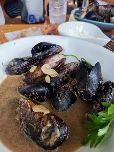 Fomos bem atendidos quando chegamos, todos os comensais pareciam felizes e a proprietária nos passou o cardápio todo. Fiz o pedido de uma casquinha de siri, um mexilhões ao vinagrete, uma porção de manjubinha frita e um filé de namorado com fritas. Chegou a manjubinha - sem tempero e com uma maionese Hellmans colocada num pote; meia hora depois chegaram os mexilhões que estavam muito salgados e com pouco tempero. A casquinha cancelei pois vi várias saindo e nenhuma delas parava na nossa mesa.
