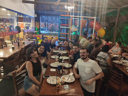Read moreAs pizzas tradicionais são bem gostosas de verdade! As que eu pedi com sabores diferentes (queijo brie, gorgonzola com pera), na minha opinião, poderiam ser mais saborosas. O ambiente é muito lindo e muito amplo, tem a opção de estar lá dentro ou lá fora do restaurante. Na parte de fora tem um parquinho coberto mais para grandinho com piscina de bolinhas etc. Tem rodízio, mas não fomos nele (vai até 22h30 e chegamos às 23h). Comemos a pizza empratada, ou seja, a pizza vem no tamanho de um prato raso de comida normal. Fomos muito bem atendidos pela Jéssica (que estava em treinamento, mas nos atendeu em tudo o que precisamos). Um ponto que poderia ser melhorado é que as pizzas vão chegando conforme vão ficando prontas, o que atrapalha se você estiver em um grupo grande (estávamos em 12), ou seja, uns começaram a comer antes dos outros... aí quando a sua pizza chegava, a do amigo já tinha terminado... Não houve comunhão na hora de comer, porque cada um comia conforme chegava. O ideal seria que os pedidos fossem soltos juntos para que todos pudessem comer ao mesmo tempo. Mas...