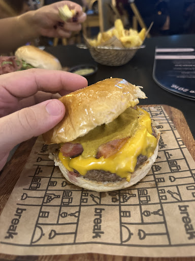 Read moreHamburgueria inovadora! Começamos com a gentileza e atenção dos atendentes do Break Burger que já te fazem se sentir em casa desde o momento em que se pisa no dentro do estabelecimento: atendimento simplesmente impecável. Em seguida, vamos para o ambiente com luz baixa e que nos remete uma clássica hamburgueria vintage com decoração industrial, bastante acolhedora e agradável, ótima para ir curtir com amigos e família. Mas é o cardápio que torna essa hamburgueria inovadora: dando um toque super particular a todos os itens do cardápio, a Break Burger consegue trazer sabores espetaculares para cada um de seus pedidos, dando destaque ao mais inovador de todos, a tábua de mini hamburgueres com as melhores opções de burgers do cardápio, em versão mini, para que o cliente possa degustar um pouco de cada e descobrir o seu favorito. A única crítica fica para que os pedidos demoram um tanto para saírem e não é o lugar ideal para um...