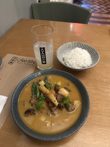 On my first visit, I ordered the bao as an appetizer, and it did not disappoint. For my main dish, I had the red curry, which was hot and well-prepared. The lemonade was just okay, but the tamarindo dessert was worth trying, even for those like me who aren't big fans of sweets.