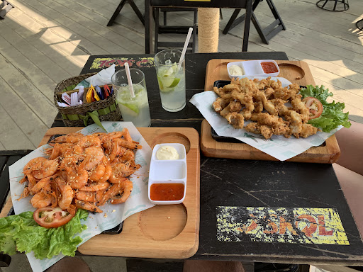 Simple cuisine served at a beachside beer stand on the boardwalk.