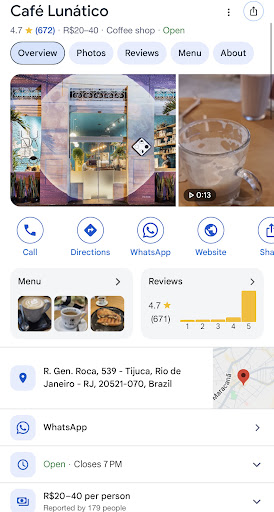 Embora o Café Lunático não seja o mais barato do Rio, os preços são considerados justos, considerando o artesanato, o ambiente e a qualidade dos pratos. Você está pagando por mais do que apenas uma xícara de café, está pagando por uma experiência. Vários visitantes sentem que o que recebem, o ambiente, o sabor e a apresentação, justificam o que gastam.