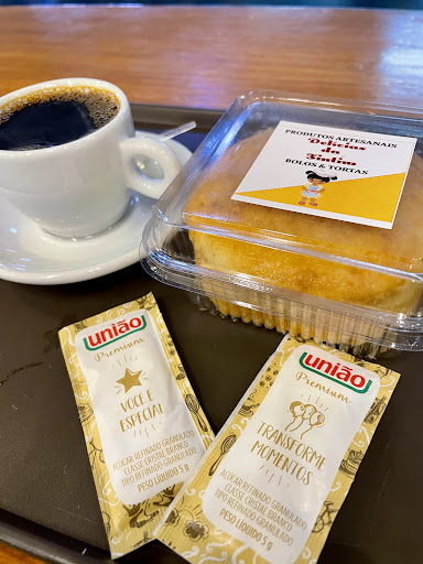 O ambiente é tranquilo e simples, com atendimento simpático e ágil. O cardápio oferece diversas opções de café (coado, expresso, cappuccino), além de sucos, refrigerantes e itens de vitrine como pão de queijo, croissant, pastel, entre outras opções.