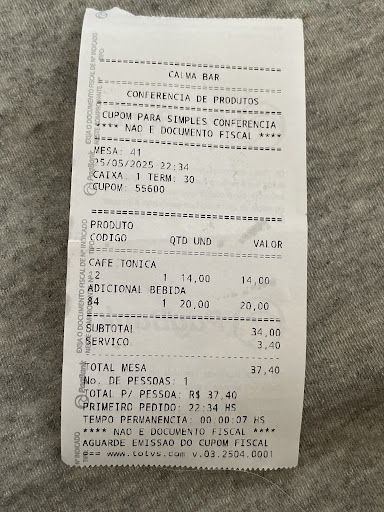 Ontem tive o desprazer de ir ao Calma e ser atendida no caixa pela gerente Carol, que não me explicou que todos os drinks com água tônica eram preparados com o produto ZERO açúcar, quando me serviram o drink prontamente perguntei se tinha sido preparado com água tônica zero pois senti o gosto pungente de adoçante, a bartender me explicou que só trabalhavam com tônica zero e eu perguntei se poderia trocar meu café tônica por um mate da casa que era o mesmo valor, ela me disse tranquilamente pra eu avisar a pessoa que me atendeu no caixa e quando fui fazer isso fui humilhada, ela ficou debochando e rindo da minha cara, me tratando de forma completamente desrespeitosa, me disse que eu era o tipo de perfil de cliente problema que ela evitava desgaste, disse que se eu não especifiquei que não era com tônica zero ela não poderia fazer nada por mim, me disse “mas eu vou fazer o que com esse drink? se alguém tivesse comprado um desse agora eu podia vender ele mas aí eu vou perder um drink porque você não especificou que não bebia produto zero?” também disse que eu pedir pra trocar um drink era desgastante pra ela e pra bartender, mas não me foi avisado quando comprei no caixa com essa mesma pessoa até tentei explicar pra ela que o correto era estar descrito no cardápio ou ser avisado e que eu não estava pedindo nada demais por solicitar a troca mas só existia despreparo falta de educação naquela conversa Gastei 40 reais em um mate da casa + adicional sendo que queria tomar um café tônica, comprei no caixa pagando uma taxa de serviço de 10% e ainda fui humilhada gratuitamente na minha noite de...