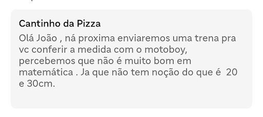 Read morePéssima experiência, a pizza veio crua, o milk shake parecia ter sido feito com leite coalhado e a pizza chegou em uma situação que nunca tinha visto antes, totalmente misturada. Quando questionei tudo isso, a atendente me respondeu que não recebe reclamações e disse que se eu quisesse mandaria outra pizza, preferi não aceitar a proposta, pois esperei 45 min e chegou assim. Bom, essa foi minha...