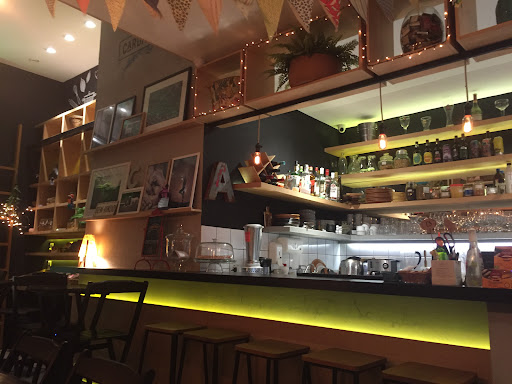 Read moreLugar bonito, iluminação indireta e bem feita. Parece uma saleta ao meio da biblioteca de uma casa antiga. As primeiras mesas - altas e com banquetas sem encosto - convidam a sentar, comer e sair logo, pois para mim, são pouco confortáveis. No fundo, em frente a cozinha americana, mesas bem aconchegantes, com sofá de alvenaria e muitas almofadas. Mojito feito com demerara, apesar de muito doce estava divino. A comida... Vamos por partes. Mesmo com a casa vazia (5 mesas ocupadas) a comida demorou mais que o esperado. Comemos as bruschetas de champignons e beringela, ambas imperdíveis e bem temperadinhas, tipo feitas por vovó. Já a pizza é quase uma pegadinha de mau gosto. Menor que um prato de sobremesa não dá para uma pessoa.